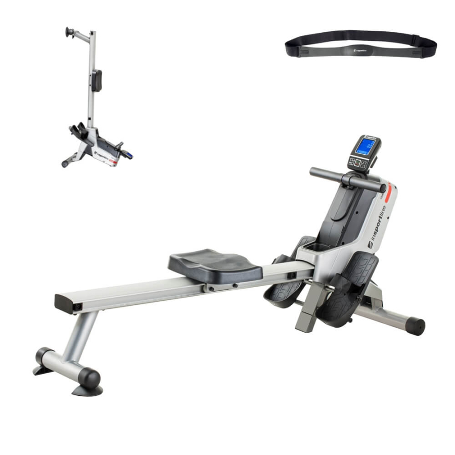 Evezőgép inSPORTline Yukona, mágnesfékes, állitható, elektromos, mágnesfékes, 16 terhelési szint, max 110kg, max 185cm, pulzus, HRC, súly 20kg - ezüst