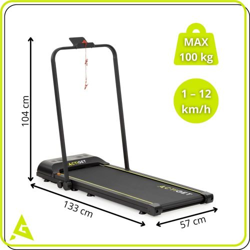 ActiGet elektromos Futópad, 1,0 - 12,0 km/h, 1 LE motor, Bluetooth és FitShow applikáció, 100 kg terhelhetőség - Fekete