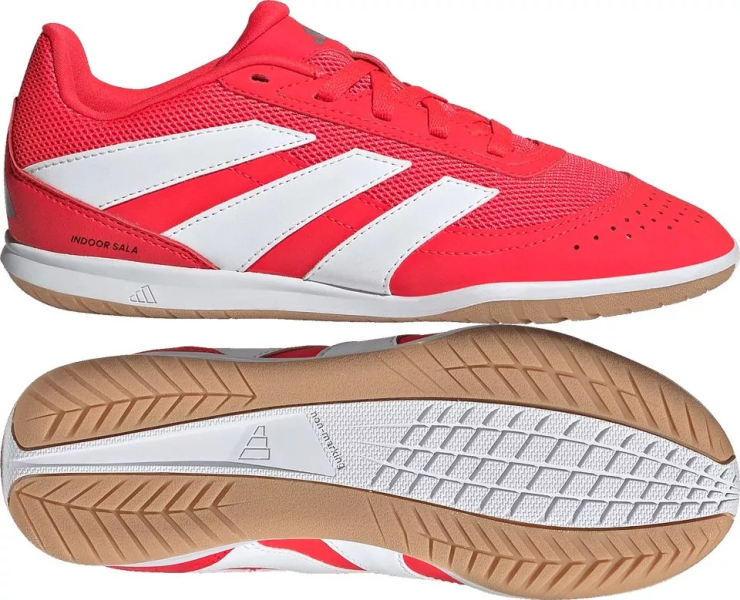 Az új adidas PREDATOR CLUB IN SALA J gyerek teremlabdarúgó cipőjében nem fogsz kihagyni egy gólt sem. Ez a texturált velúr és hálós felsőrésszel ellátott junior teremcipő nem hagy cserben. A sima beltéri felületen tapadó gumitalp kiváló stabilitást garantál minden helyzetben.