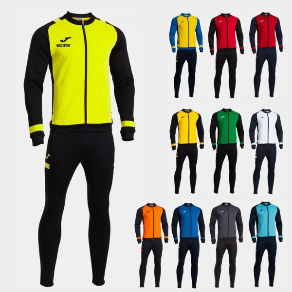 Férfi melegítőruha, amely meleg belső anyagának köszönhetően alkalmas hideg időben történő edzésre. Egy cipzáras pulóverből és egy hosszú nadrágból áll. Nélkülözhetetlen és funkcionális szett bármilyen tevékenységhez.A pulóver teljes hosszában cipzáras, mélyen húzható gallérral, bordázott mandzsettával és derékpánttal rendelkezik a jobb illeszkedés érdekében. Két oldalsó cipzáras zsebbel is rendelkezik apró tárgyak tárolására. Kontrasztos színű kivitel. A nadrág rugalmas derékpánttal, lapos belső húzózsinórral és két oldalsó cipzáras zsebbel rendelkezik.Mindkét ruhadarab belső polár anyagból készült, amely hővédelmet nyújt a sportolóknak. Puha a bőrön, kényelmes és szabad mozgást biztosít.Hímzett Joma logó.