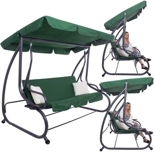Egy rendszer, amely lehetővé teszi a hinta könnyű kibontását ülő helyzetből fekvő helyzetbe a hinta háttámlájának mindkét oldalán található rugón lévő kerek csap segítségével.