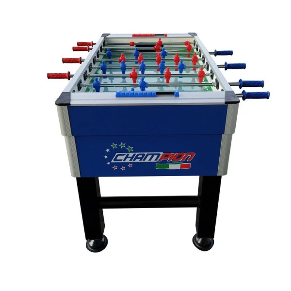 A Roberto Sport Champion csocsó asztal érmevizsgálóval ellátott beltéri típusa a csocsózás igazi mestermunkája, amely a legmagasabb szintű játékélményt nyújtja. Professzionális asztali foci , a versenymodellekkel megegyező tulajdonságokkal, rendkívűl robosztus és kompakt. A sima 111x70 cm-es játéktér biztosítja, hogy a labda rendkívül gyorsan mozogjon, így minden mérközés izgalmas és gyors tempóban zajlik. 18 mm-es magas széntartalmú edzett acélból készült megnövelt ellenállású teleszkópos rudak. A teleszkópos rudazat miatt gyerekek is nagyobb biztonsággal használhatják. Nagy ellenállású műanyagból öntött perselyek új fejlesztésű önkenő anyagú csúszóbetéttel, amely kivételes játéksebességet tesz lehetővé minimális erőfeszítéssel.  A Roberto Sport Champion csocsóasztal minden csocsó rajongó és profi számára ideális választás, aki a legmagasabb minőséget, megbízhatóságot és izgalmas játékmenetet keresi.