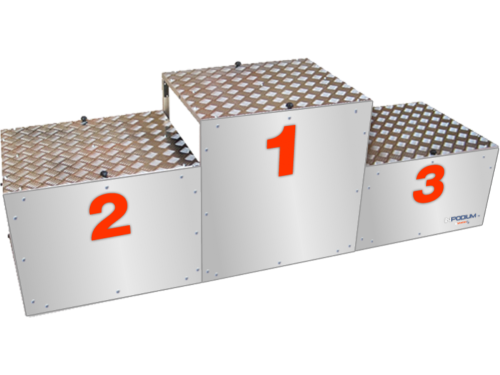 Semmilyen körülmények között sem szabad felugrani a dobogóra, mielőtt minden modul minden részét rögzítenénk, és a 3 modult teljesen rögzítenénk és rögzítenénk. Csak akkor, ha a körülmények ellenállnak a 450 kg-os terhelésnek, akkor a legsúlyosabb nyertesek biztonságosan vehetik át díjaikat.