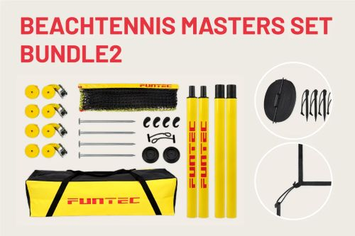 A Beach Tennis Masters szett a FUNTEC feszítőrendszerrel van felszerelve: az alsó feszítőkötelek közvetlenül a feszítőpántokhoz vannak vezetve, ami megakadályozza a hálóoszlopok elgörbülését és különösen stabil állást biztosít.