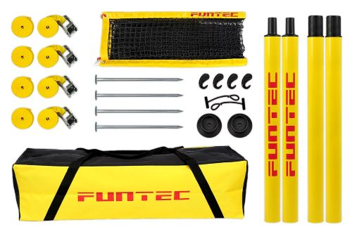 A Beach Tennis Champ szett a FUNTEC feszítőrendszerrel van felszerelve: az alsó feszítőkötelek közvetlenül a feszítőpántokhoz vannak vezetve, ami megakadályozza a hálóoszlopok elgörbülését és különösen stabil állást biztosít.