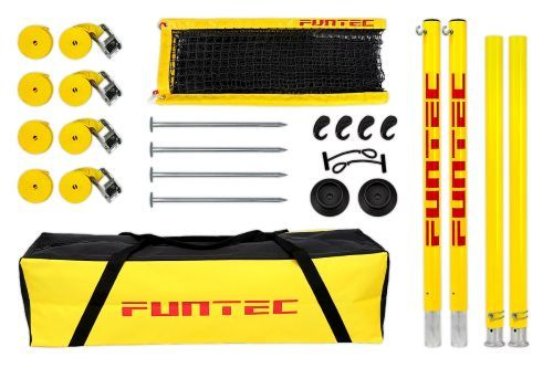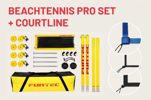 A Beach Tennis Pro szett a FUNTEC feszítőrendszerrel van felszerelve: az alsó feszítőkötelek közvetlenül a feszítőpántokhoz vannak vezetve, ami megakadályozza a hálóoszlopok elgörbülését és különösen stabil állást biztosít.