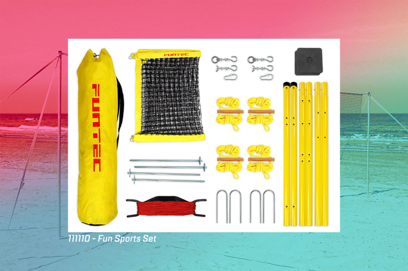 A 111110 cikkszám a Funtec Fun Sports Set nevű hordozható, multifunkcionális hálórendszert jelöli. Ez a készlet kifejezetten szabadidős sportokhoz készült, és ideális választás strandröplabdához, strandteniszhez, tollaslabdához (beachminton) vagy footvolley-hoz. FUNTEC Sports GmbH +3
