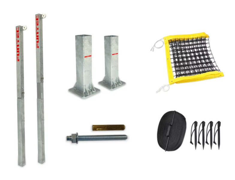 • 1 pár Beach Basic hálóoszlop, 90 x 90 mm-es acélprofilból, teljes hálófeszítés mellett 2 cm-es lépésekben állítható magasságú