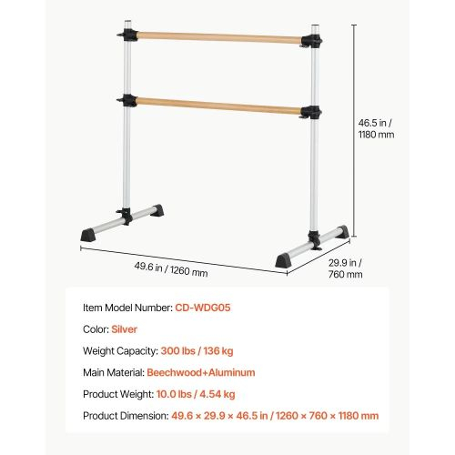 Tanja balett rúd, dupla bükkfa rúd otthonra, szabadon álló hordozható balett nyújtó táncrudak, állítható magasságú, billegésgátló fitnesz edzőtermi felszerelés, Pilates egyensúlyi edzéshez