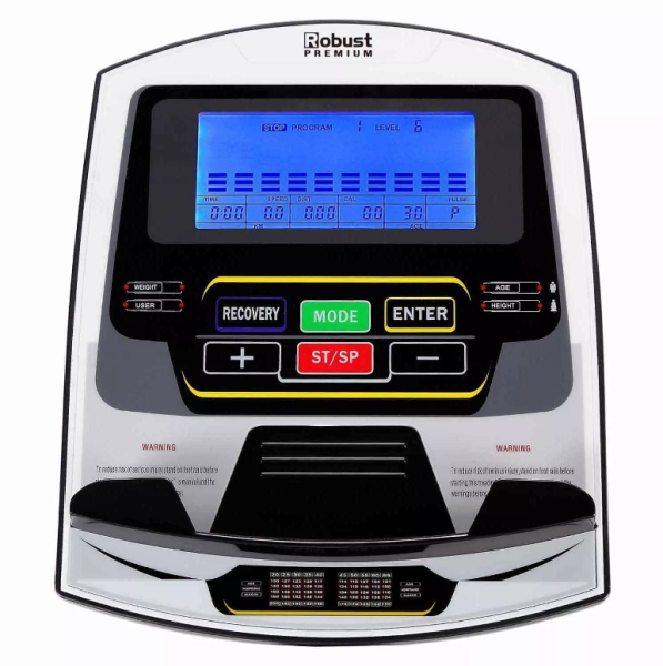 A Robust Premium Montana fronthajtásos elliptikus gép kiváló választás otthoni, családi használatra. A 22 kg-os lendítő tömeg egyenletes hajtást biztosít. Fékrendszere mágnesfékes, így az edzés teljes időtartama alatt teljesen csendesen működik. A változatos edzésmunkáról a 24 beépített edzésprogram gondoskodik, melyek között pulzus kontrollált és watt program is található. Ezekkel a lehetőségekkel az edzés legyen akár kezdő vagy haladó a felhasználó, egyaránt kihívást jelent. A mozgatható karok ergonomikus kialakításának köszönhetően az edzés során a kar-, a hát-, a váll- izmok átmozgatása is garantált. A Robust Premium Montana elliptikus tréner vázszerkezete rendkívül erős, ezáltal nagy 135 kg-os terhelhetőséggel rendelkezik. A kék háttérvilágítással ellátott LCD kijelzőn számos adat nyomon követhető, így teljesítményét folyamatosan nyomon követheti. A kézpulzus mérési lehetőség mellet pulzus jeladó öv vételi lehetőséggel is rendelkezik, mely segítségével folyamatosan nyomon tudja követni pulzusának alakulását az edzés során.