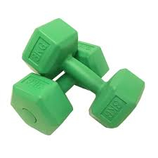 A műanyag borítás színe a súlyzók tömege szerint változik (a 3 kg-s zöld színű).