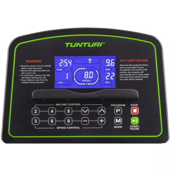 A Tunturi Cardio Fit T40 futópad a mindennapos futás élményét nyújtja a felhasználó számára. 41 beépített edzésprogrammal rendelkezik, futófelülete 125 x 42 cm-es, mely T-Flex ütés- és rázkódás elnyelő ízületkímélő rendszerrel van ellátva. LCD kijelzője könnyen kezelhető. A sebesség és a dőlésszög a gyorsgombok segítségével könnyen beállítható, illetve a kapaszkodókarról is vezérelhető. Az összecsukható futófelület pedig a gép könnyű mozgatását és helymegtakarítást tesz lehetővé.