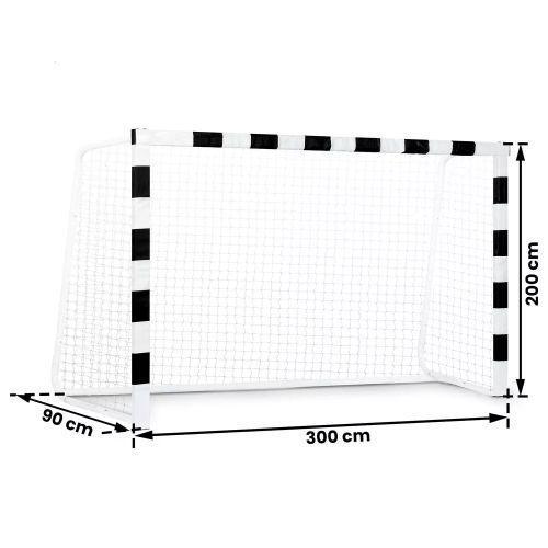 Focikapu NS-465, 300x200x90cm, fekete-fehér Focikapu NS-465, 300x200x90cm, fekete-fehér ideális otthoni edzéshez és szabadidős játékhoz a kertben. Ideális megoldás minden futballrajongó számára – gyerekeknek, fiataloknak és felnőtteknek egyaránt. Nagy méreteinek köszönhetően realisztikus játékélményt nyújt, és lehetővé teszi a pontosság, a lövészet és a kapusteljesítmény gyakorlását a valódi pályához közeli körülmények között. A porszórt bevonatú, masszív acélszerkezet stabilitást és időjárásállóságot biztosít. A sűrű szövésű, tartós háló megbízhatóan elkapja az összes lövést, és a mellékelt rögzítőkkel könnyen rögzíthető. Az összeszerelés egyszerű a mellékelt útmutatónak és a szerelési tartozékoknak köszönhetően. A kapu alkalmas kertbe, parba vagy sportpályára való telepítésre, kompakt csomagolásának (kb. 117 × 38 × 11 cm) köszönhetően pedig könnyen tárolható vagy szállítható szükség szerint. Termékjellemzők: Fix cél Stabil keret Tartós és stílusos csomagolás Könnyű, könnyen hordozható Rugalmas hálózat Könnyű összeszerelés Termékspecifikáció: Szélesség: 300 cm Magasság: 200 cm Mélység: 90 cm Polietilén háló Keretvédő a készletben