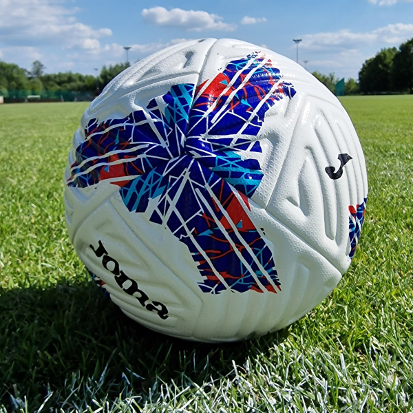 Tartós Joma Uranus III labda, amely intenzív mérkőzésekhez és edzésekhez készült különböző felületeken. Masszív szerkezete tartós anyagokból készült, amelyek kopásállóságot és stabil repülést biztosítanak. Ideális a minőséget és a játékbiztonságot értékelő játékosok számára.