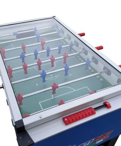 A Roberto Sport International Champion Cover csocsó asztal az Olasz manufaktúra érmevizsgálóval ellátott beltéri típusa új szintre emeli a játékélményt. A Champion Cover csocsóasztal a csocsózás igazi szerelmeseinek készült, akik nemcsak a legjobb minőségre, hanem a teljeskörű védelemre vágynak. A sima 111x70 cm-es játéktér biztosítja, hogy a labda rendkívül gyorsan mozogjon, így minden mérközés izgalmas és gyors tempóban zajlik. Ez a prémium asztal a versenyek színvonalát képviseli, és az innovatív fedél megoldás megvédi a játékteret és a mechanikai elemeket a sérülésektől. A kifejezetten ergonomikus fogantyúkkal ellátott játékosfigurák teszik lehetővé a precíz és kényelmes irányítást. 18 mm-es teleszkópos rudak biztosítják a kiváló teljesítményt játék közben. Az asztal stabil fém lábai és erős, robusztus felépítése révén biztosítja, hogy a játék még a leghevesebb mérkőzéseken is zökkenőm mentes maradjon. A teleszkópos rudazat miatt gyerekek is nagyobb biztonsággal használhatják. A Roberto Sport International Champion Cover csocsóasztal tökéletes választás minden csocsó rajongónak, aki a legjobb minőséget és egy igazán izgalmas, dinamikus játékélményt keres! Emelje a csocsózást új szintre és élvezze a maximális játékélményt minden egyes mérkőzésen!