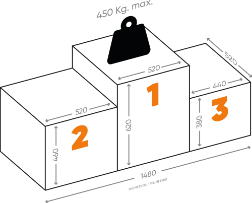 Semmilyen körülmények között sem szabad felugrani a dobogóra, mielőtt minden modul minden részét rögzítenénk, és a 3 modult teljesen rögzítenénk és rögzítenénk. Csak akkor, ha a körülmények ellenállnak a 450 kg-os terhelésnek, akkor a legsúlyosabb nyertesek biztonságosan vehetik át díjaikat.