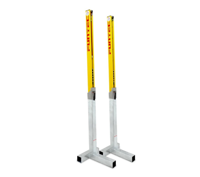 - 1 pár Pro Beach hálóoszlop, rendszer földelőhüvelyekkel, szabadon álló telepítéshez fa gerendákkal, 91 x 91 mm-es alumínium profilból készült hálóoszlopok, sárga porszórt bevonattal, DVV 1 vizsgálati jellel