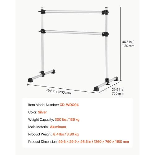 Vivien balett rúd, alumínium dupla rúd otthonra, szabadon álló hordozható balett nyújtó táncrudak, állítható magasságú, billegésgátló fitnesz stúdió felszerelés, Pilates egyensúly edzéshez