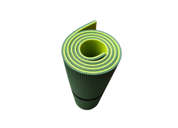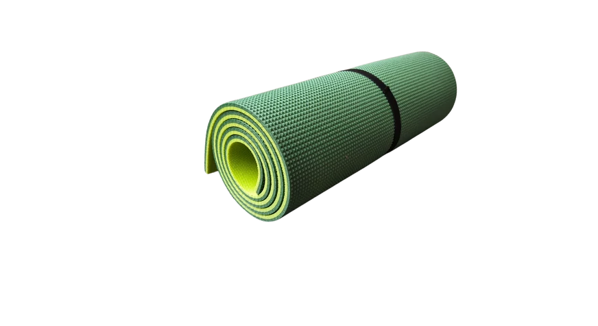 Napozáshoz kempingezéshez alkalmas, összetekerhető, prégelt felületű habszivacs matrac rögzítő gumival. Az egyik réteg sötét zöld, a másik világos zöld színű.